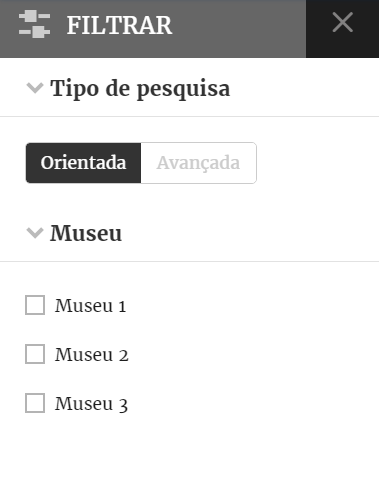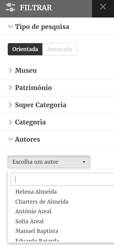 A Pesquisa orientada permite o acesso aos conteúdos através da utilização de critérios de pesquisa simples ou combinados resultando num refinamento gradual dos resultados. Esta Pesquisa incide transversalmente sobre todos os Museus ou apenas sobre uma das instituições.